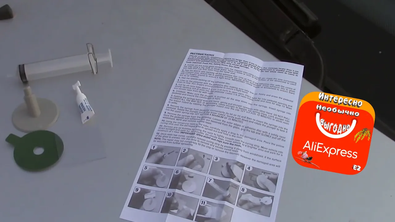 Набор для ремонта стекла автомобиля с Алиэкспресс.Ремонт сколов и трещин своими руками.